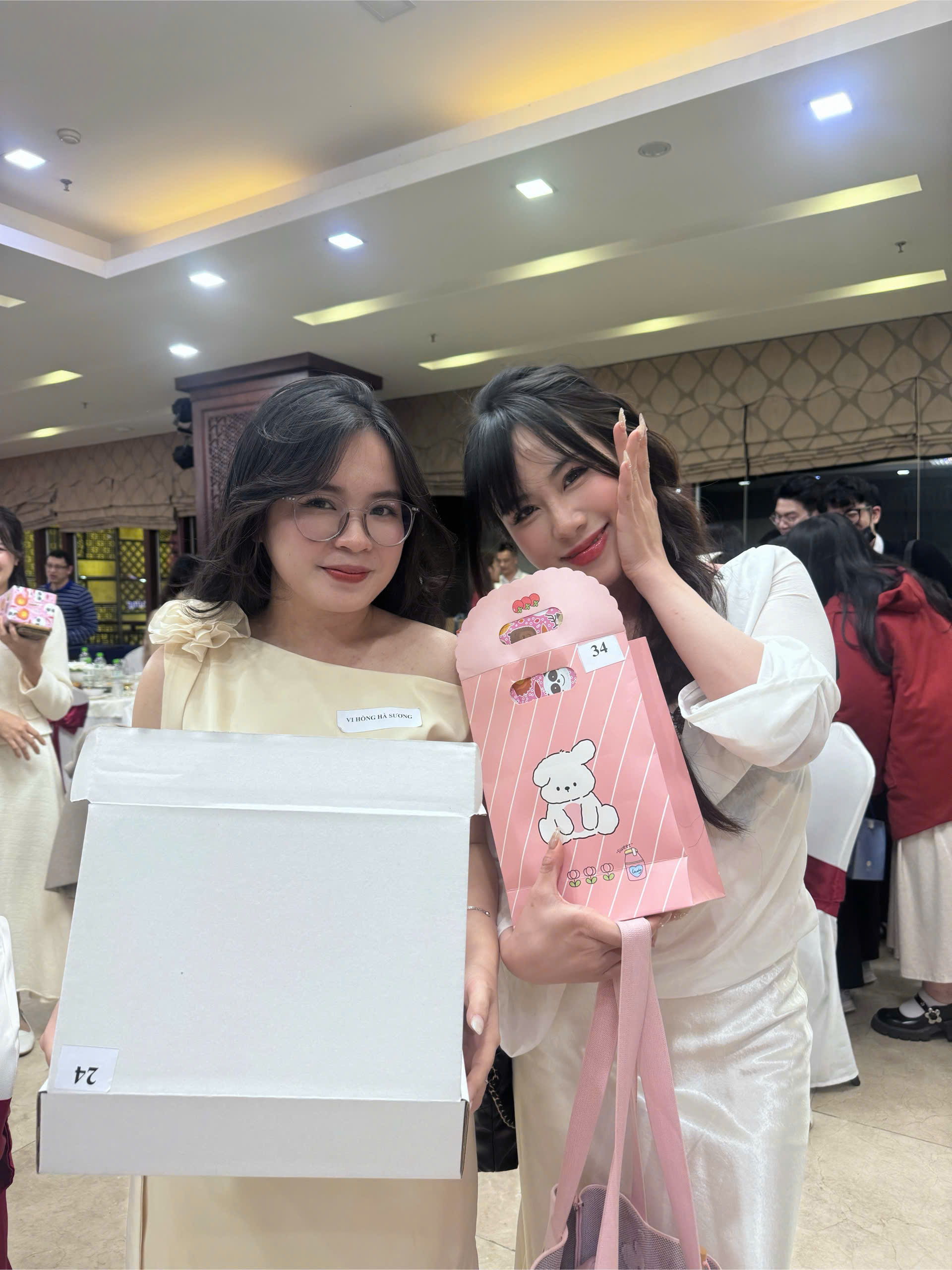 Hai cô gái xinh đẹp ở hai "mảnh ghép" đã sớm làm quen và thân thiết.
