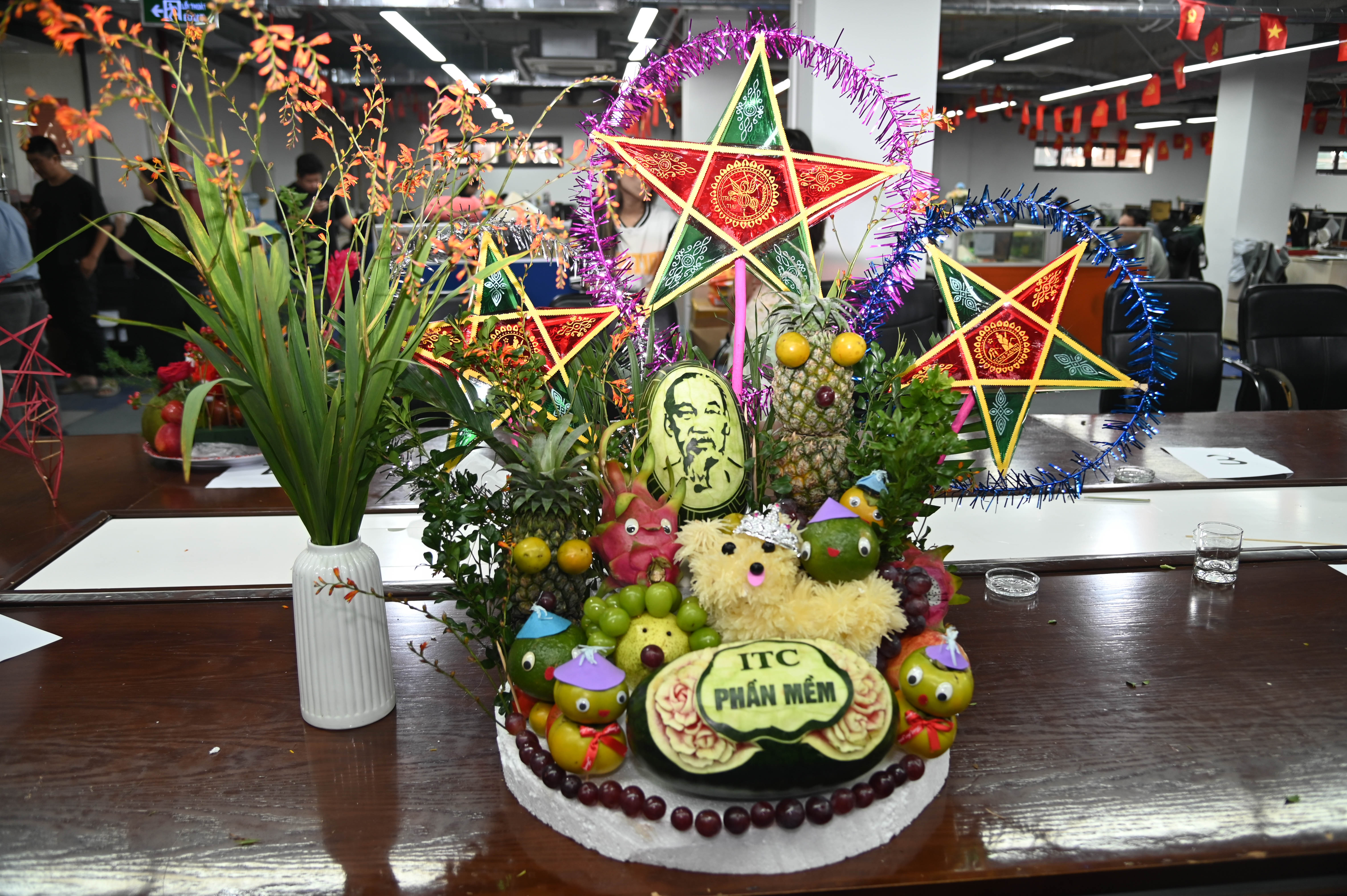 Sự kiện không chỉ là hoạt động vui Tết Trung thu truyền thống, mà còn là sân chơi sáng tạo, gắn kết nội bộ giữa các phòng ban trong công ty. Mỗi mâm cỗ là một tác phẩm nghệ thuật được chính tay các chị em ITC-er khéo léo tỉa gọt, sắp đặt và trình bày công phu – vừa thể hiện kỹ năng thủ công tinh tế, vừa gợi lại những ký ức tuổi thơ thân thương bên mâm cỗ trông trăng.