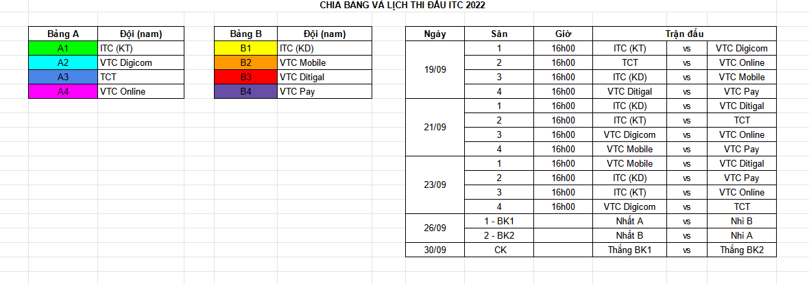 Bóng đá nam: ITC Kỹ thuật, VTC Digicom, Tổng Cty, VTC Online, ITC Kinh doanh, VTC Mobile, VTC Digital, VTC Pay
