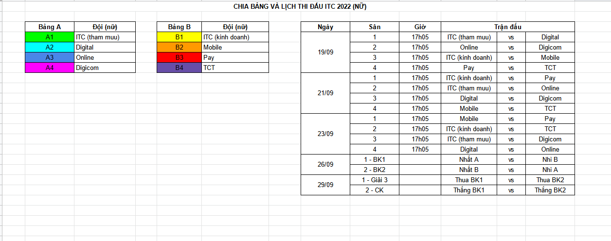 Bóng đá nữ: ITC Tham mưu, VTC Digicom, Tổng Cty, VTC Online, VTC Kinh doanh, VTC Mobile, VTC Digital, VTC Pay.