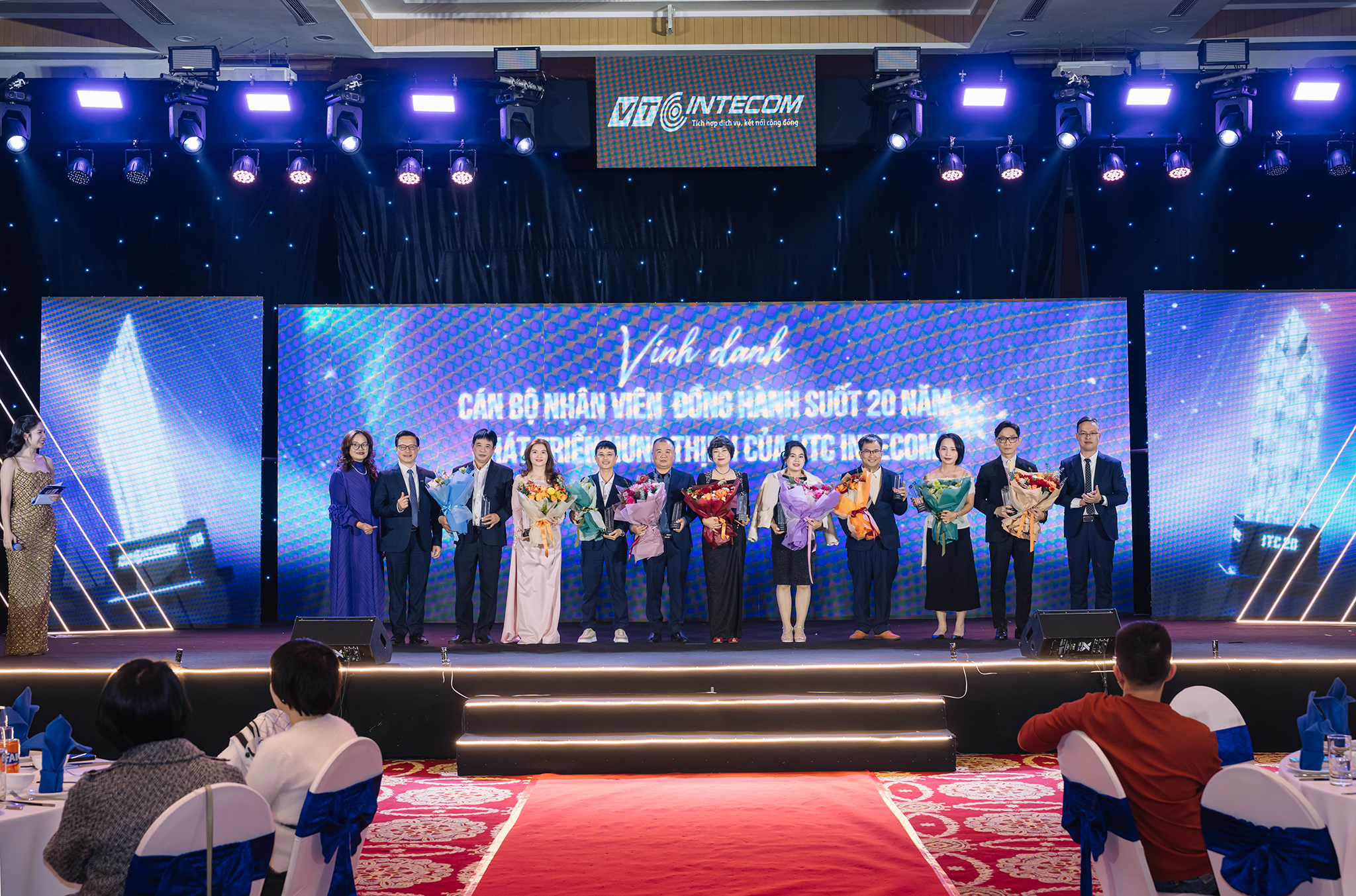Một điểm nhấn giàu cảm xúc của Gala ITC 20 là khoảnh khắc trang trọng: Vinh danh các cán bộ, nhân sự gắn bó tròn 20 năm với VTC Intecom – những “người giữ lửa” đã bền bỉ đồng hành, cống hiến và góp phần tạo dựng nền móng vững chắc cho sự phát triển của Intecom hôm nay. Mỗi cái tên được xướng lên không chỉ là sự ghi nhận cho một hành trình dài đầy tâm huyết, mà còn là lời tri ân sâu sắc dành cho những giá trị bền bỉ đã và đang được tiếp nối qua nhiều thế hệ.