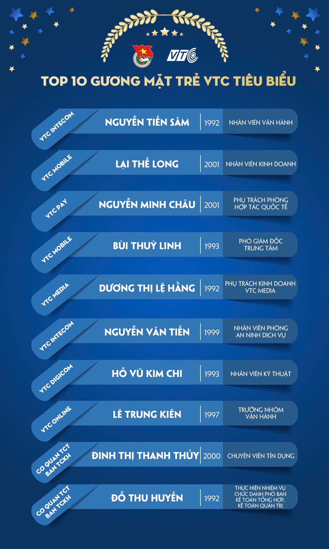 Xin chúc mừng 10 cá nhân xuất sắc nhất dưới đây – những gương mặt tiêu biểu lan tỏa tinh thần tuổi trẻ VTC!