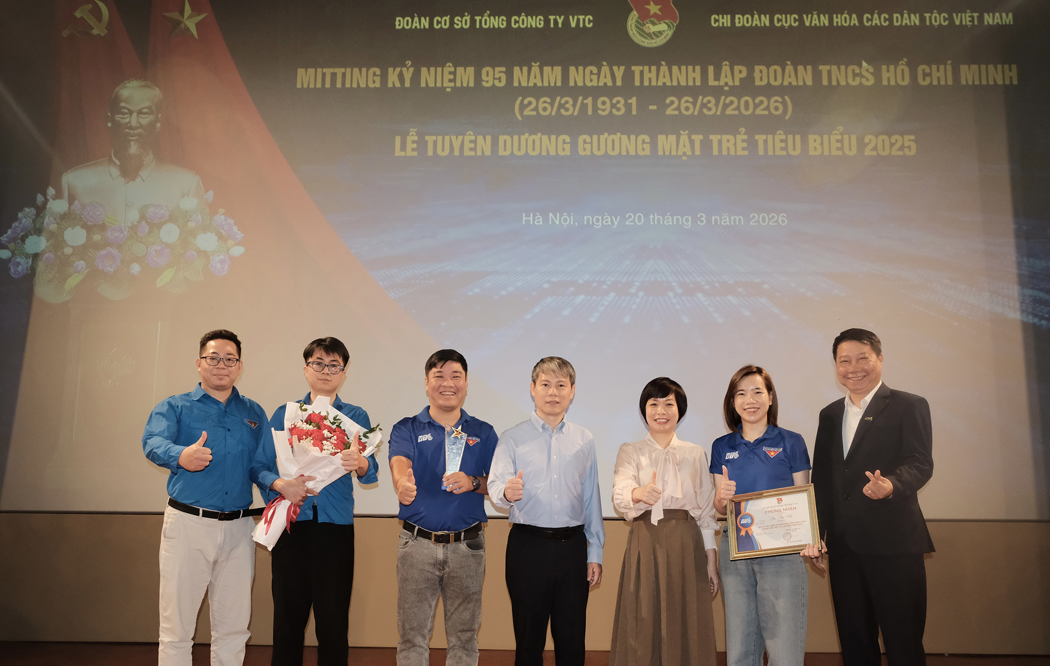 Đồng thời, buổi lễ cũng tổ chức tuyên dương và trao tặng Bằng khen cho các cá nhân thuộc Top 20 Gương mặt trẻ VTC tiêu biểu năm 2025.