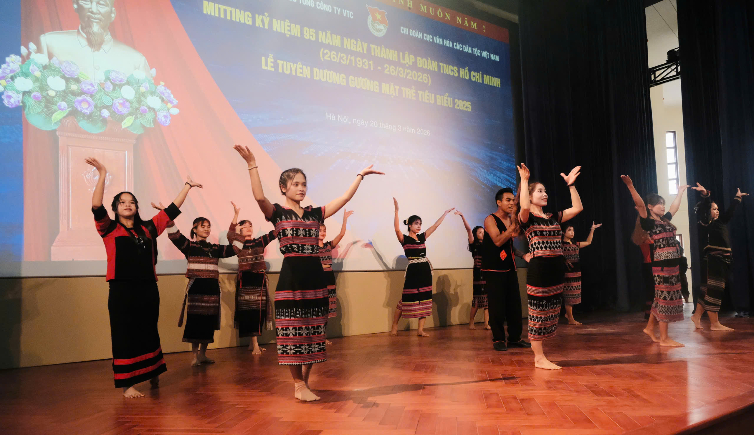 Trước thềm Lễ mít tinh và tuyên dương “Gương mặt trẻ VTC tiêu biểu 2025”, cũng trong chiều ngày 20/3, đoàn công tác của VTC đã có gần 2 giờ tham quan, trải nghiệm tại Làng Văn hoá – Du lịch các dân tộc Việt Nam (Đồng Mô, Hà Nội) - không gian tái hiện sinh động bản sắc của 54 dân tộc anh em, mở đầu đầy cảm hứng cho chuỗi hoạt động Tháng Thanh niên.