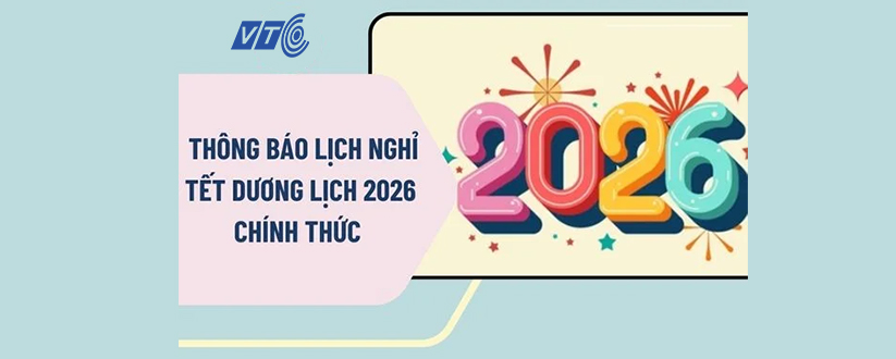 Tổng công ty VTC kính chúc toàn thể cán bộ, nhân viên và gia đình một kỳ nghỉ Tết Dương lịch an lành, vui tươi, chuẩn bị tâm thế tích cực, sẵn sàng cho một năm 2026 với nhiều mục tiêu, cơ hội và thành công mới.