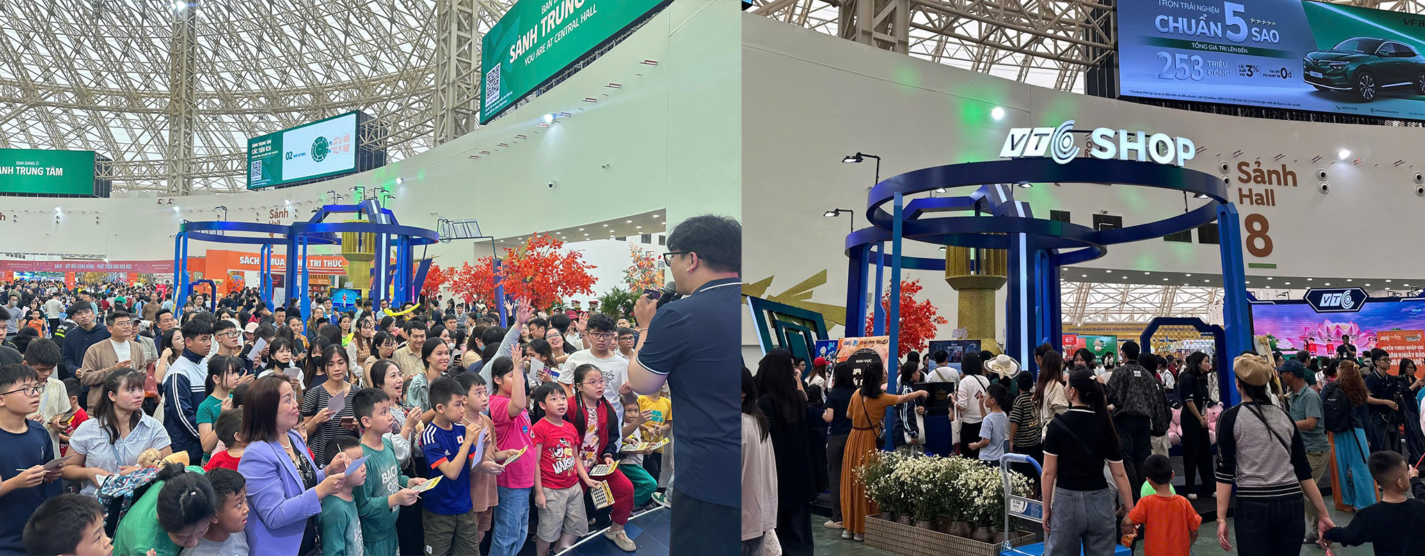 Ngay trong ngày đầu tiên Hội chợ chính thức mở cửa (26/10), gian hàng VTC đã nhanh chóng trở thành điểm đến “hot” nhất khu vực Tinh hoa Văn hóa. Với biểu tượng cánh chim Lạc cách điệu, logo VTC nổi bật ở vị trí trung tâm, cùng không gian trải nghiệm đậm chất “văn hóa trong không gian số”, gian hàng đã thu hút hàng trăm lượt khách tham quan, check-in và khám phá.