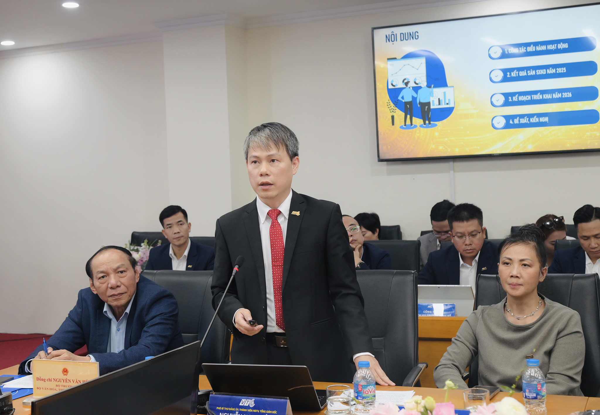 Báo cáo tổng kết công tác năm 2025 và triển khai nhiệm vụ năm 2026. Báo cáo đã đánh giá toàn diện các lĩnh vực hoạt động của Tổng công ty, khẳng định trong bối cảnh nhiều khó khăn, biến động của tình hình kinh tế – xã hội, VTC vẫn kiên trì nỗ lực giữ vững ổn định sản xuất – kinh doanh, chủ động đẩy mạnh chuyển đổi số, đổi mới mô hình quản trị, đồng thời không ngừng nâng cao chất lượng sản phẩm, dịch vụ trong các lĩnh vực nội dung số, truyền thông và giáo dục số, qua đó tạo nền tảng quan trọng cho sự phát triển bền vững trong giai đoạn tiếp theo.
