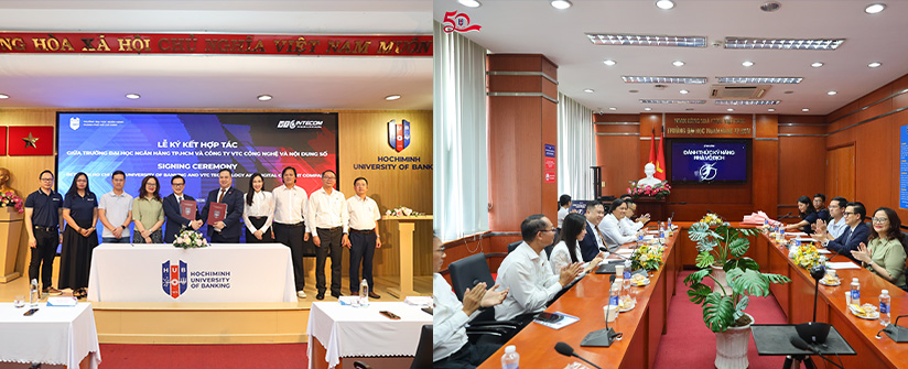 Đại diện Công ty VTC Intecom và trường Đại học Ngân hàng TP.HCM ký kết hợp tác vào ngày 20/4.
