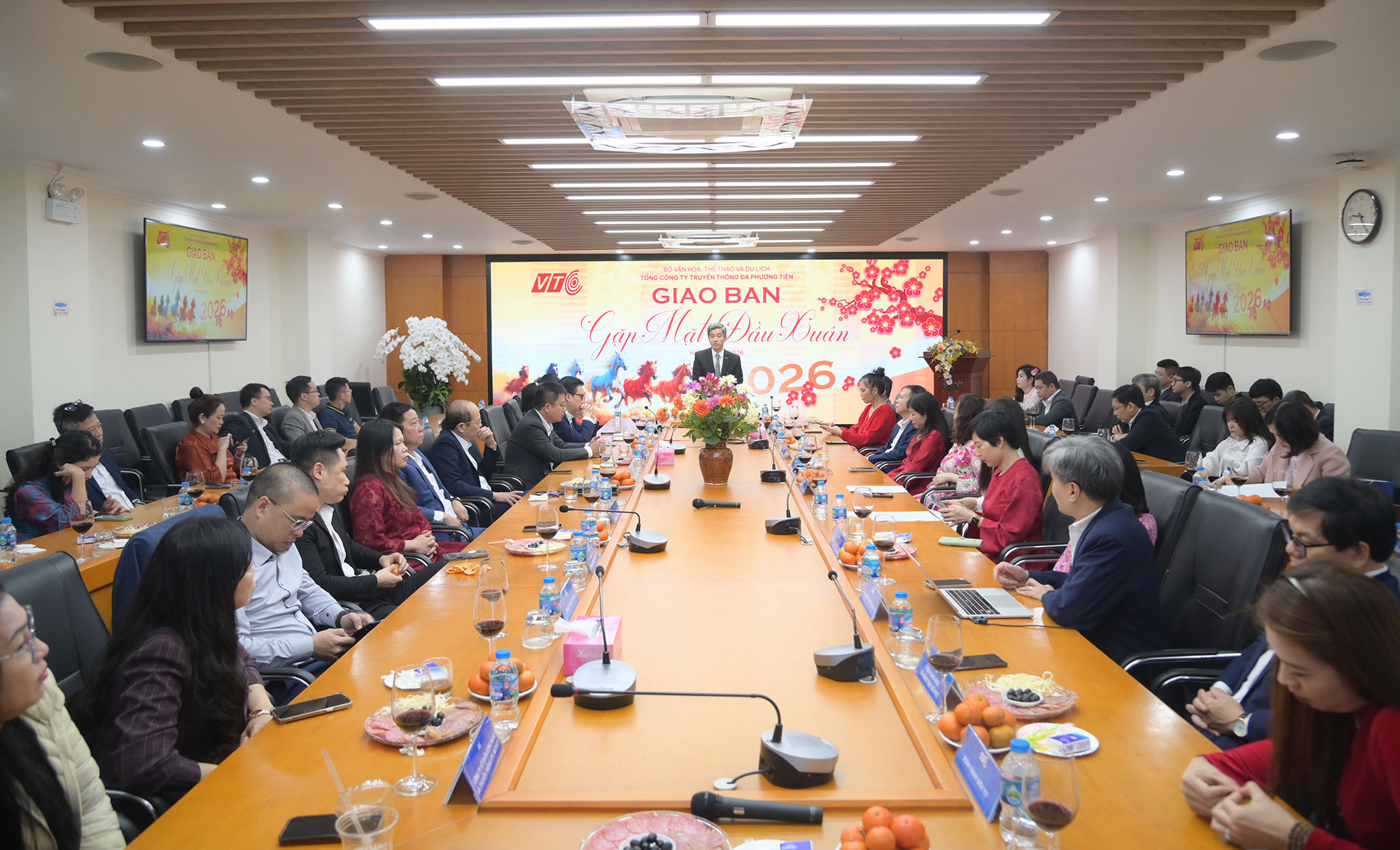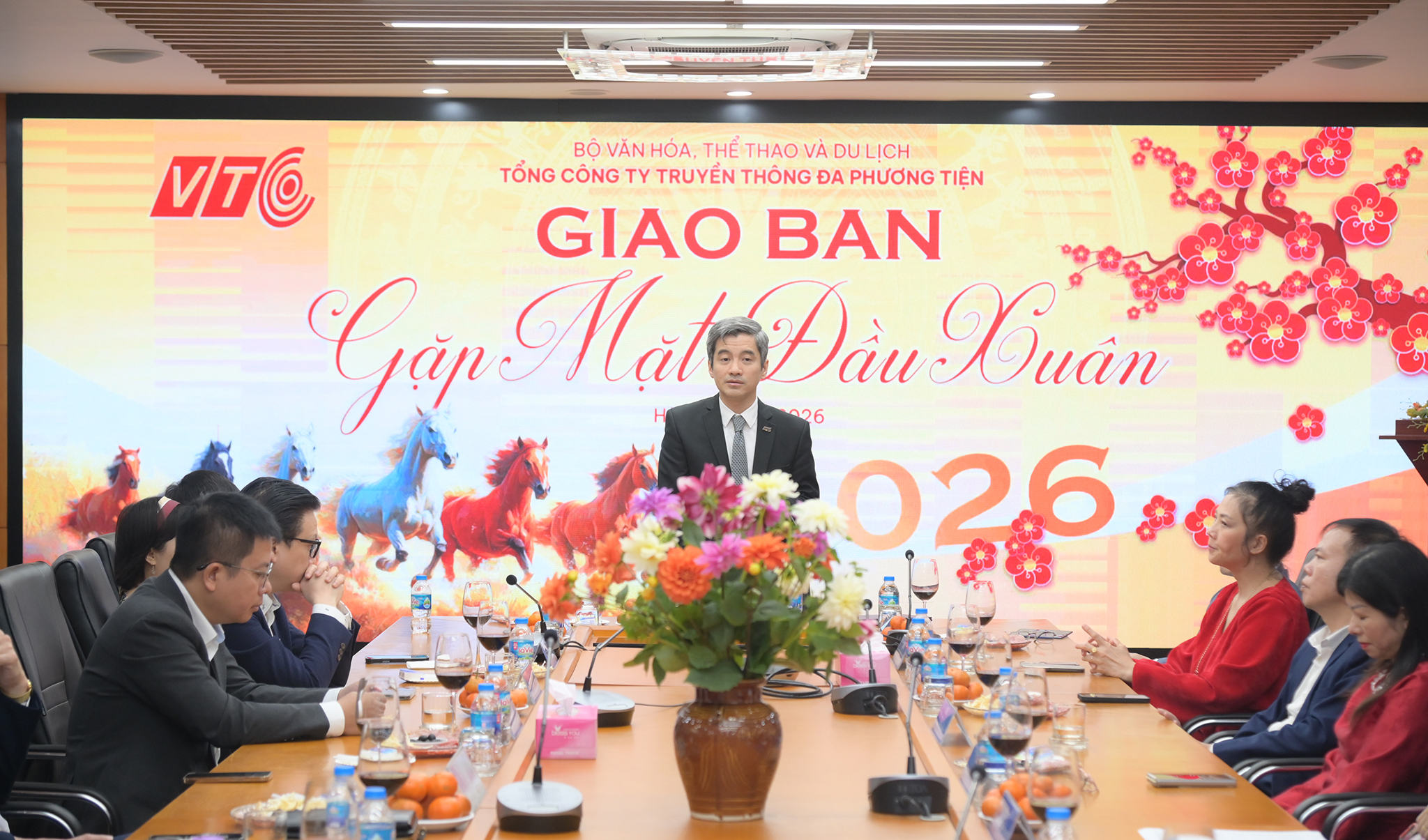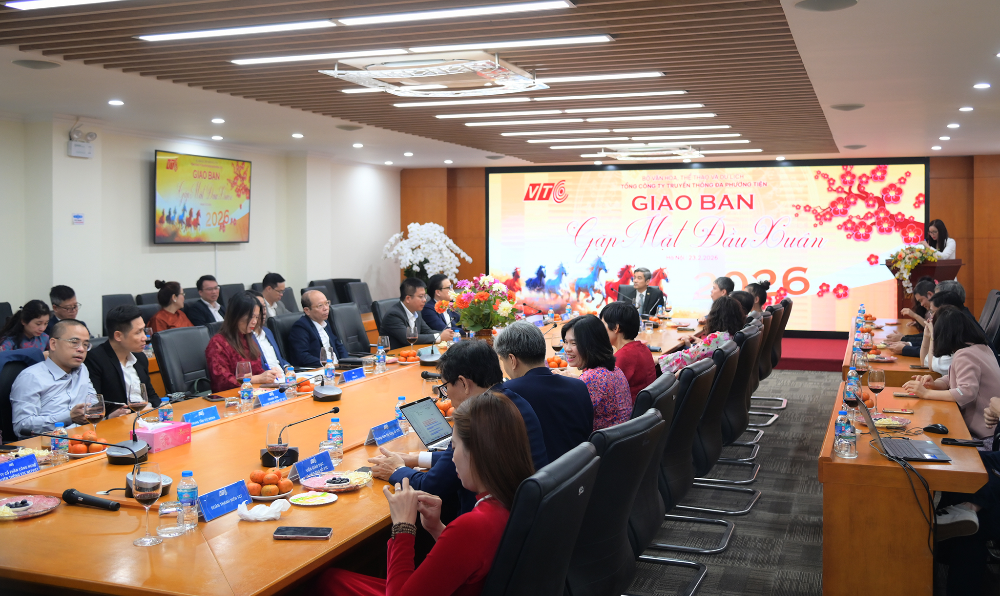 Sáng mùng 7 Tết Bính Ngọ (23/02/2026), tại trụ sở 67B Hàm Long, Tổng Công ty VTC tổ chức Giao ban Gặp mặt đầu Xuân trong không khí phấn khởi, khẩn trương và quyết tâm cao. Tham dự Hội nghị có sự tham dự của toàn thể Ban Lãnh đạo Tổng Công ty, lãnh đạo đơn vị thành viên và các cán bộ chủ chốt. Đồng chí Chu Tiến Đạt – Bí thư Đảng ủy, Chủ tịch Hội đồng Thành viên Tổng Công ty – chủ trì và chỉ đạo Hội nghị.