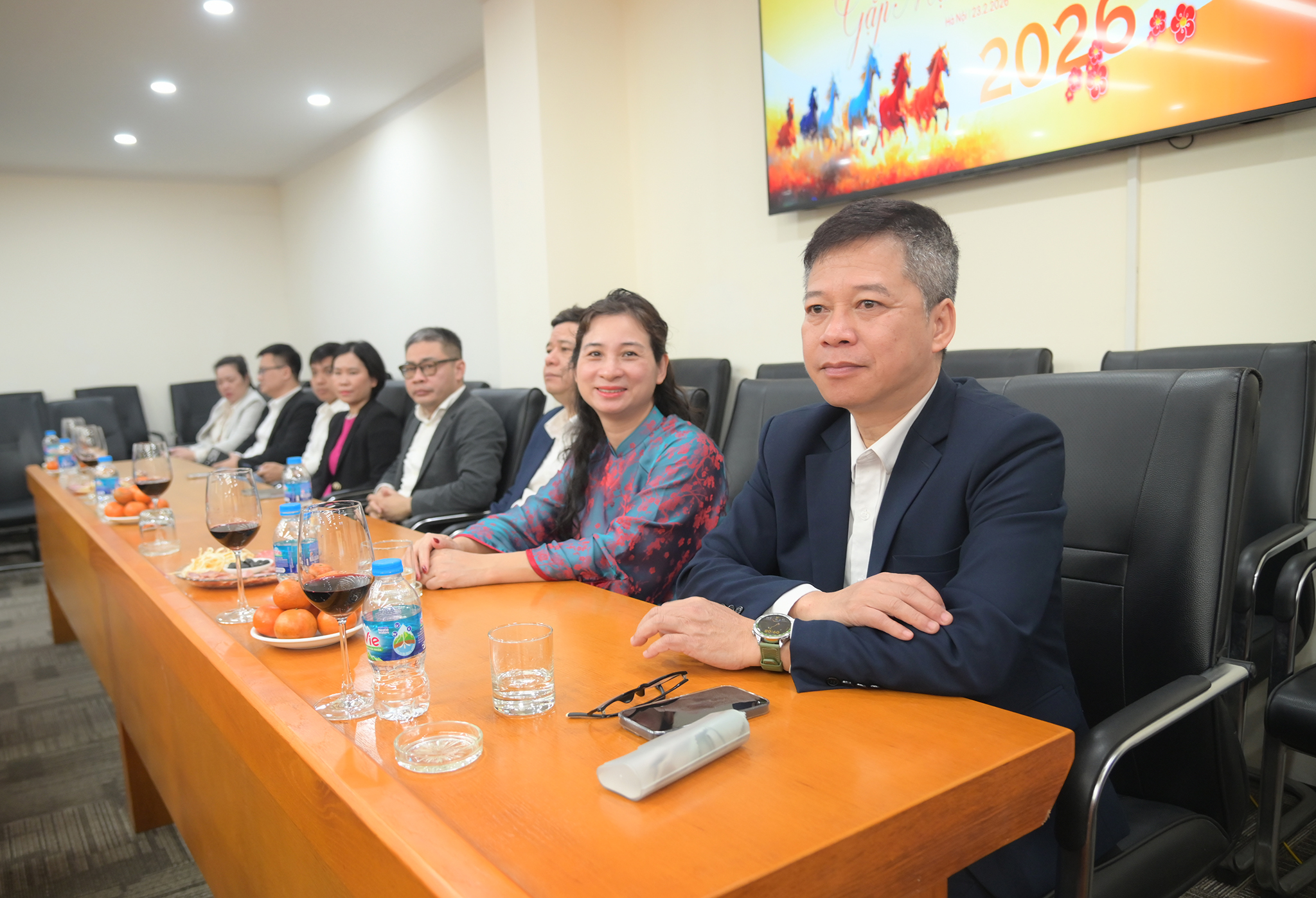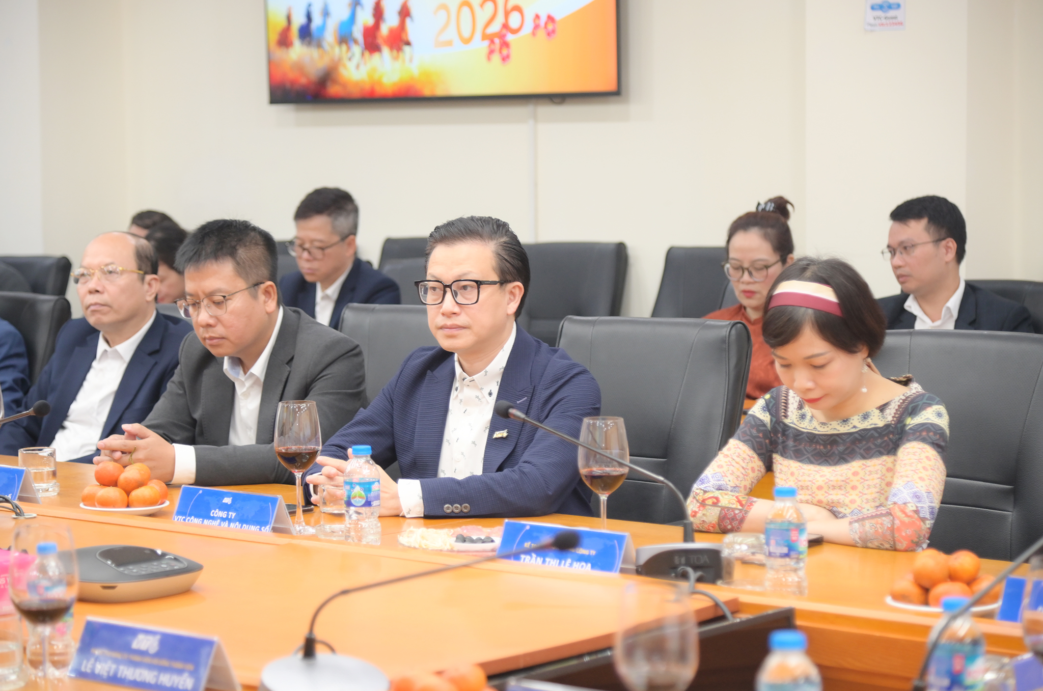 Buổi Giao ban đầu Xuân khép lại trong không khí ấm áp của những ngày đầu xuân, đồng chí Chu Tiến Đạt cùng Ban Lãnh đạo Tổng Công ty đã thực hiện nghi thức nâng ly chúc mừng năm mới Bính Ngọ 2026. Trong lời chúc đầu xuân, Chủ tịch gửi gắm kỳ vọng về một năm mới đoàn kết, đổi mới và bứt phá; chúc toàn thể cán bộ, nhân viên, người lao động VTC sức khỏe, hạnh phúc và hoàn thành xuất sắc nhiệm vụ được giao.