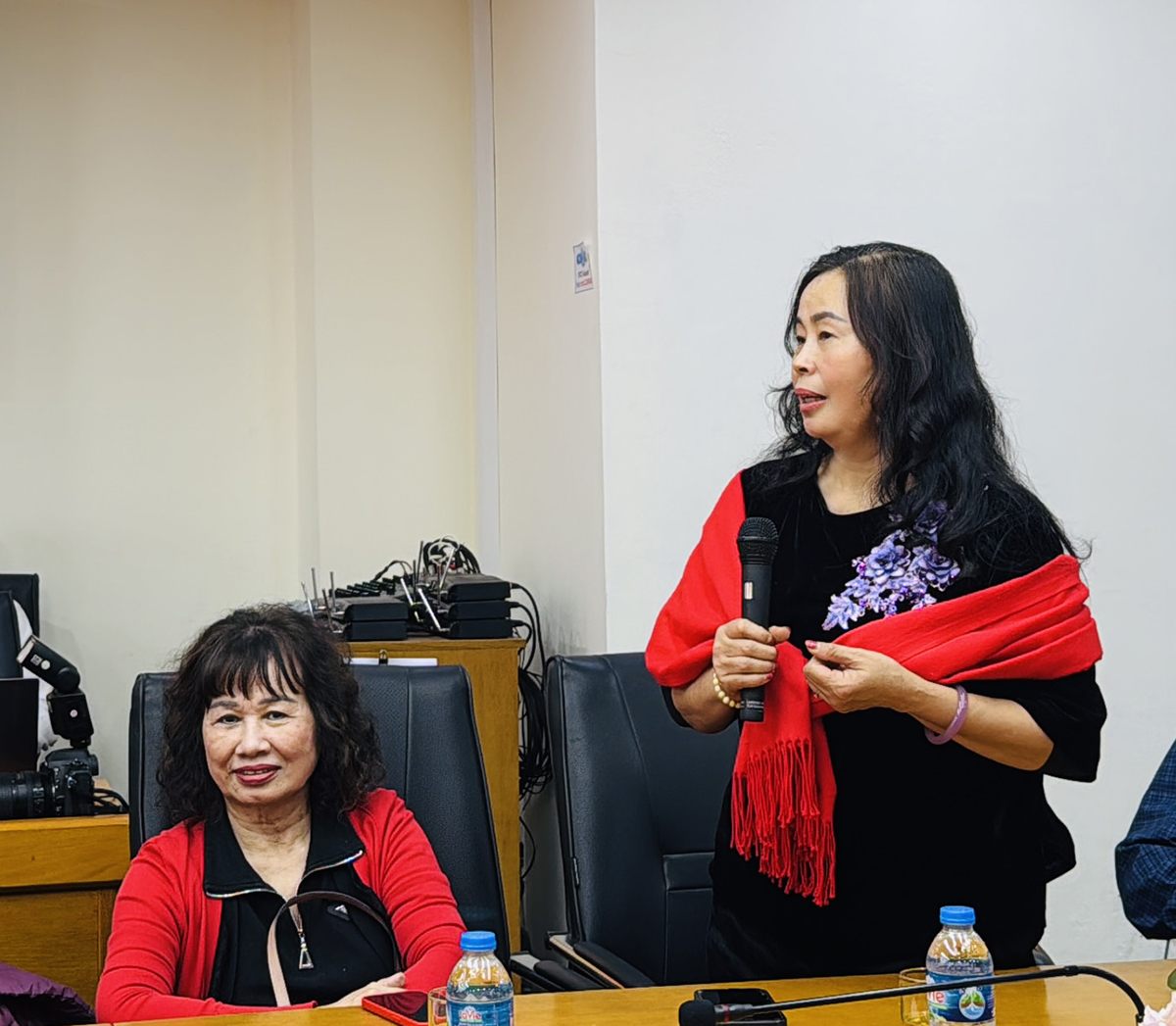 Chị Phùng Thị Thanh Phương - Nguyên Phó Tổng giám đốc Tổng Công ty chia sẻ tại buổi gặp mặt.