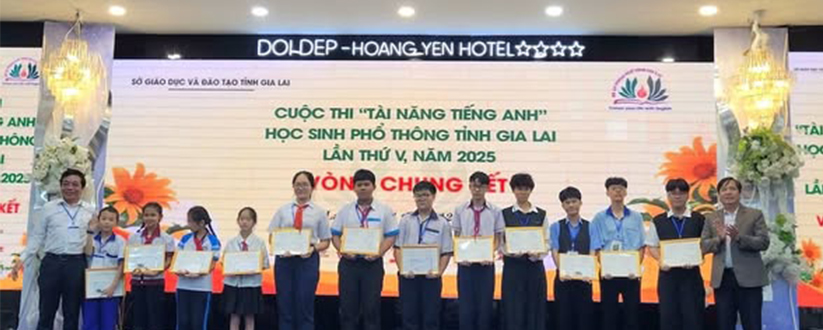 Ngày 14/12/2025, Sở Giáo dục và Đào tạo tỉnh Gia Lai đã tổ chức Vòng Chung kết Cuộc thi “Tài năng tiếng Anh” cho học sinh phổ thông tỉnh Gia Lai lần thứ V, năm 2025, khép lại hành trình tuyển chọn được triển khai bài bản và kỹ lưỡng. Cuộc thi là sân chơi học thuật uy tín, nơi các học sinh xuất sắc nhất hội tụ, thể hiện năng lực tiếng Anh toàn diện và được vinh danh xứng đáng.