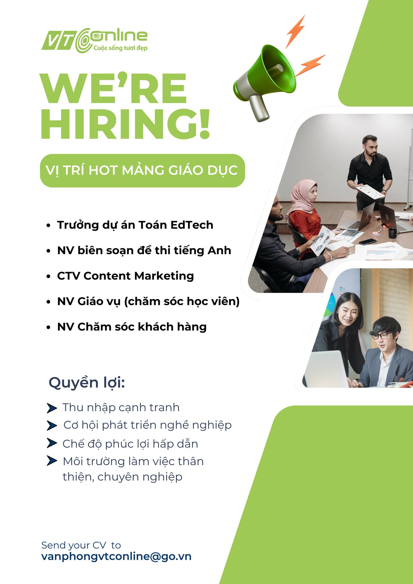 Mỗi sản phẩm giáo dục không chỉ là công nghệ, mà còn là giải pháp tạo ra tác động tích cực cho cộng đồng. Nếu bạn mong muốn làm việc trong một môi trường chuyên nghiệp – nhân văn – không ngừng đổi mới, nơi công việc của bạn góp phần thay đổi cách học và cách tiếp cận tri thức của hàng triệu người, thì VTC Online chính là nơi bạn thuộc về.