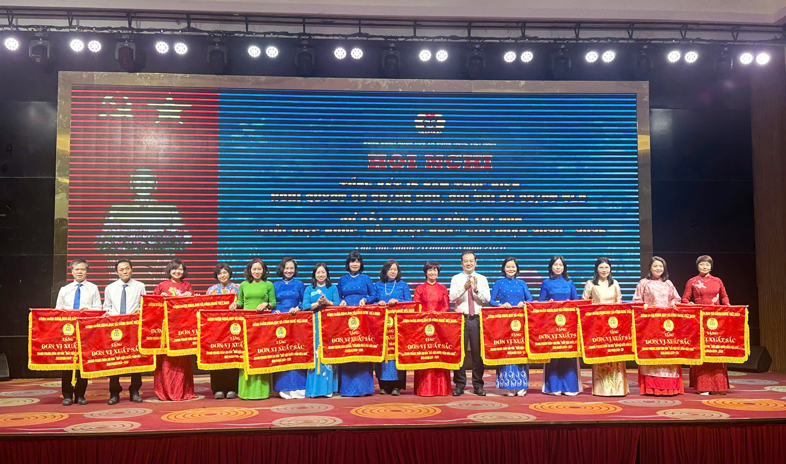 Nhân dịp này, Ban Thường vụ Công đoàn Khoa học và Công nghệ Việt Nam đã trao bằng khen cho 34 tập thể, 128 cá nhân và tặng Cờ thi đua chuyên đề cho 15 tập thể có thành tích xuất sắc trong phong trào “Giỏi việc nước, đảm việc nhà” giai đoạn 2020–2025.
