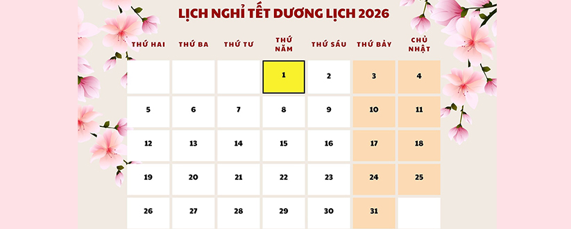 Tùy vào chế độ nghỉ hằng tuần, lịch nghỉ Tết Dương lịch 2026 có thể được áp dụng theo hai phương án phổ biến sau: