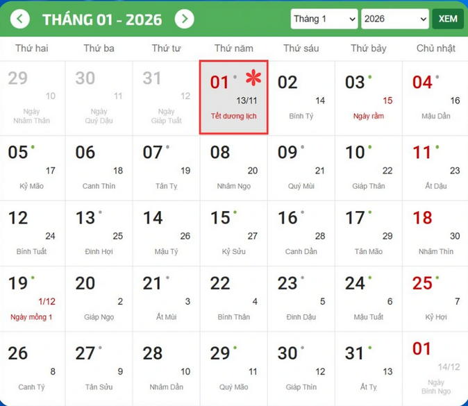 Theo quy định của Bộ luật Lao động, Tết Dương lịch 2026 (Tết Tây) rơi vào thứ Năm, ngày 01/01/2026. Tùy theo chế độ nghỉ hằng tuần của từng cơ quan, doanh nghiệp, người lao động có thể được nghỉ 01 ngày hoặc kéo dài đến 04 ngày liên tục.