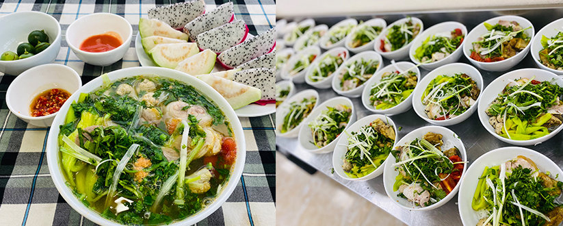 – Ăn mâm tại Nhà ăn tầng 8 (67B Hàm Long) và Bếp Mô Bai (18 Tam Trinh)
