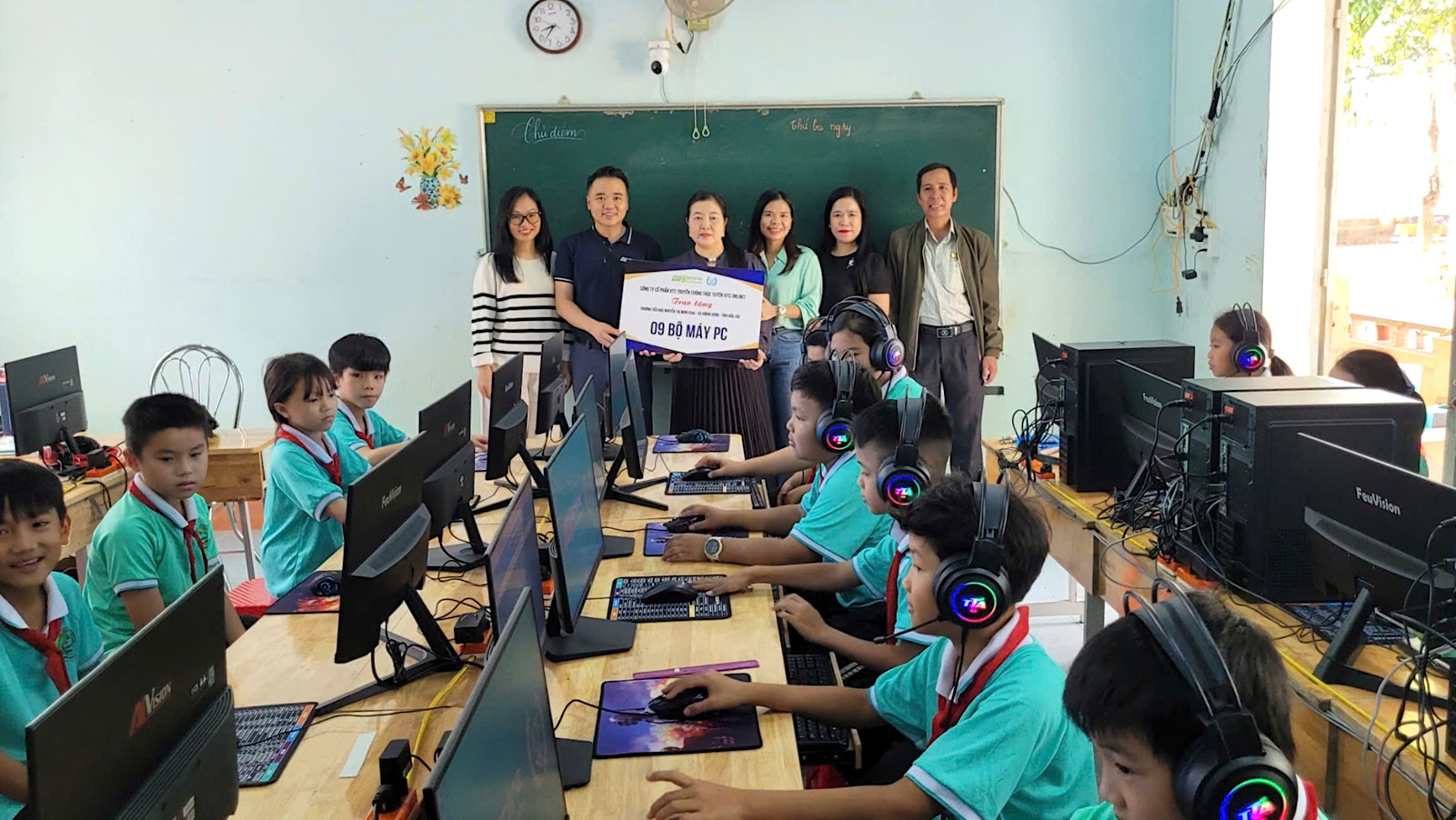 Đại diện Công ty VTC Online trao 9 bộ máy vi tính cho Trường Tiểu học Nguyễn Thị Minh Khai (Đắk Lắk)