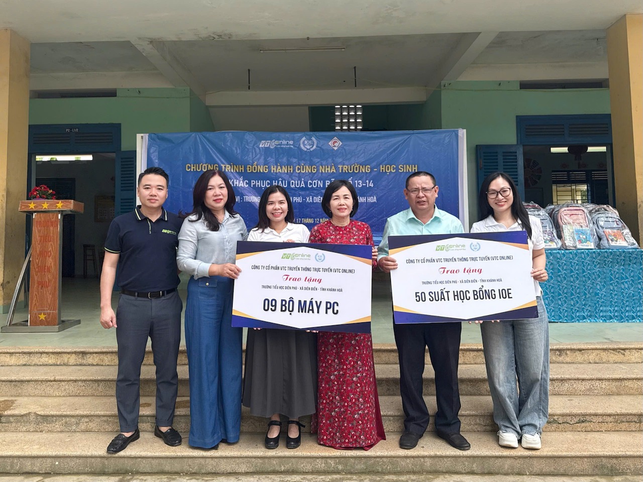 Tại các địa phương, đoàn công tác đã trao tặng máy tính phục vụ học tập, học bổng IOE cùng nhiều phần quà khuyến học thiết thực dành cho học sinh và nhà trường. Những hỗ trợ kịp thời không chỉ góp phần khắc phục khó khăn về cơ sở vật chất sau thiên tai, mà còn tiếp thêm động lực để thầy cô và các em học sinh sớm ổn định việc dạy và học.