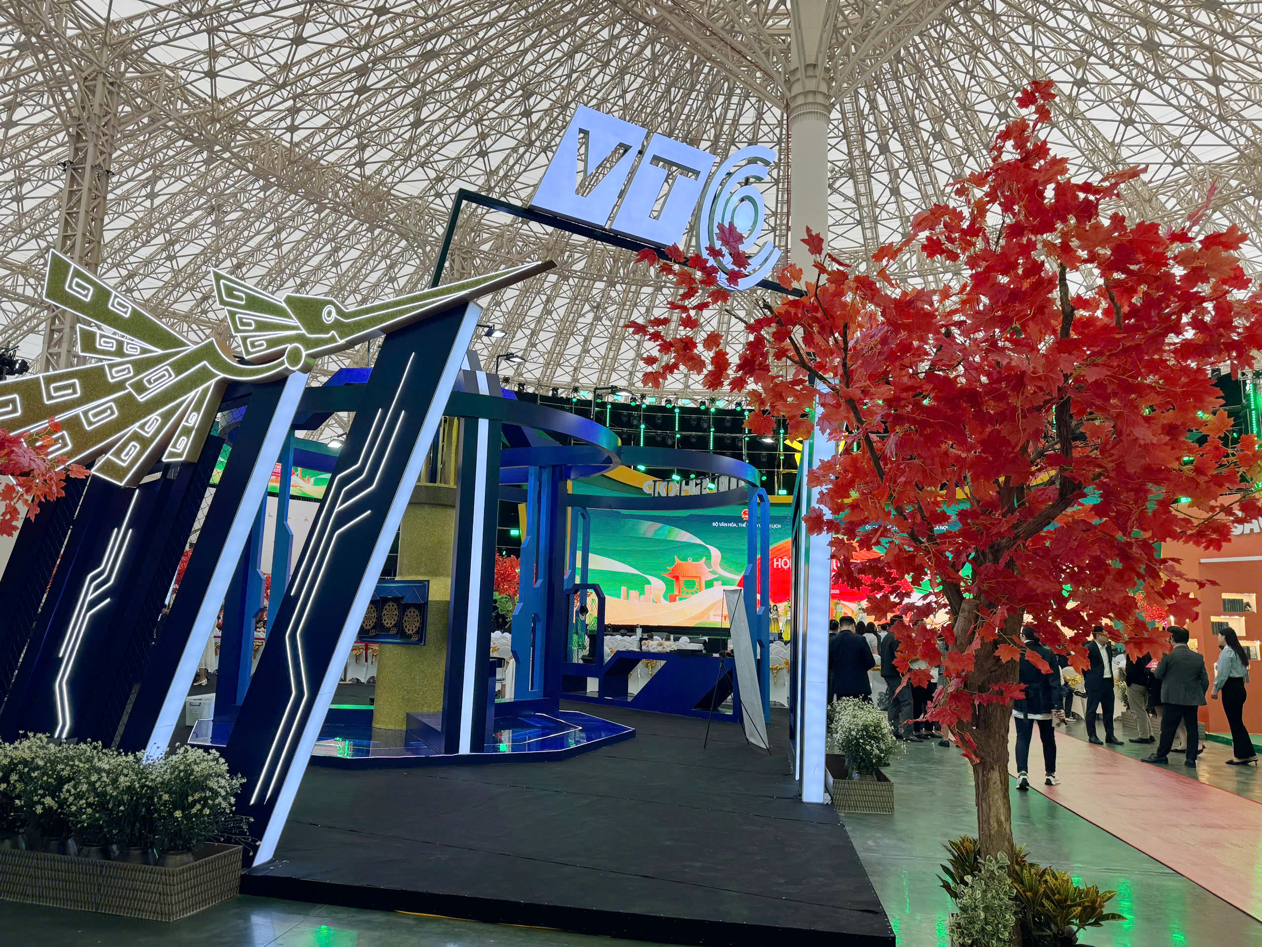Trong đó, gian hàng của Tổng công ty Truyền thông Đa phương tiện VTC tọa lạc tại khu vực “Tinh hoa Văn hóa Việt”, được thiết kế theo phong cách hiện đại, sáng tạo, kết hợp hài hòa giữa yếu tố công nghệ và văn hóa truyền thống. Gian hàng trưng bày những sản phẩm, dịch vụ tiêu biểu của VTC trong các lĩnh vực công nghệ số, nội dung số, thương mại điện tử, giải pháp truyền thông và đào tạo trực tuyến, phản ánh hành trình chuyển đổi số mạnh mẽ và tinh thần “One VTC – Kết nối sáng tạo, lan tỏa giá trị”.
