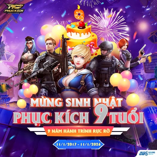 Cùng gửi những lời chúc mừng sinh nhật thật ý nghĩa tới Phục Kích, và chúc cho tựa game FPS Mobile của VTC Game sẽ tiếp tục giữ vững ngọn lửa đam mê, đồng hành cùng cộng đồng game thủ Việt trên những chặng đường tiếp theo.