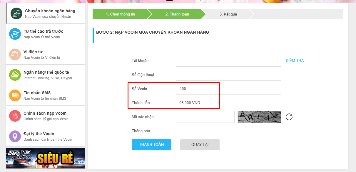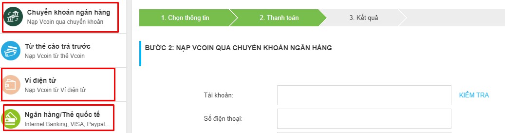 NẠP VCOIN QUA CHUYỂN KHOẢN NGÂN HÀNG