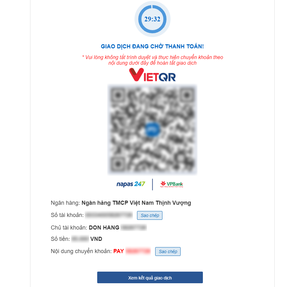 Sau khi điền đầy đủ thông tin, hệ thống sẽ chuyển tới giao diện Chuyển Khoản. Các bạn chỉ cần Quét QR Code hoặc chuyển tới Số Tài Khoản tương ứng là hoàn thành rồi!